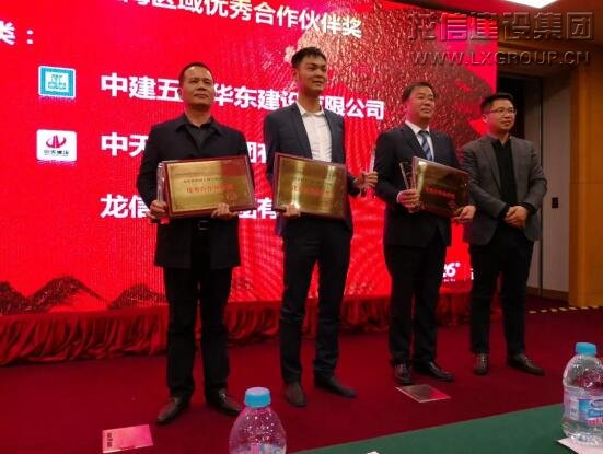 1月18日,“精誠合作,共贏未來——碧桂園上海區(qū)域2017年度優(yōu)秀合作伙伴表彰大會(huì)”在虹橋國際會(huì)議中心隆重召開。91家供應(yīng)商145位代表齊聚一堂,龍信集團(tuán)董事長陳祖新、產(chǎn)業(yè)公司總經(jīng)理龔詠暉、龍信上海區(qū)域經(jīng)理張海軍受邀出席會(huì)議并領(lǐng)獎(jiǎng)。