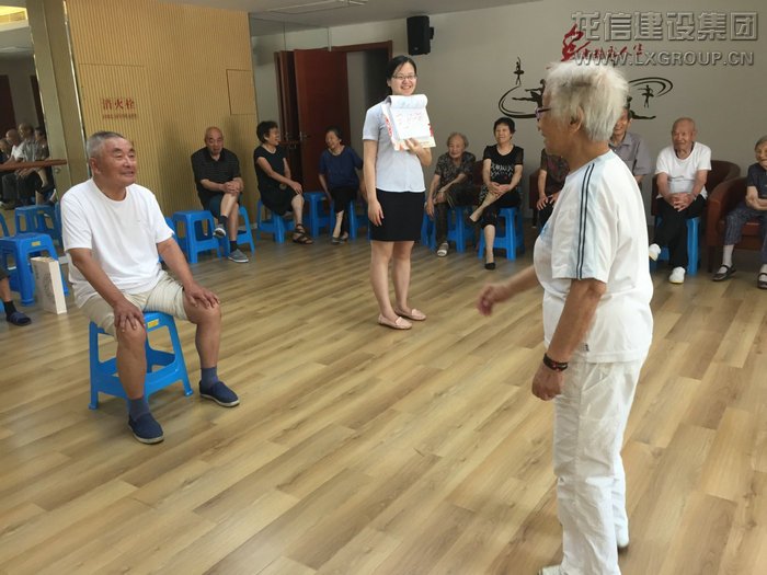 第一組上場的是909室陸阿姨和陸叔叔,阿姨在生動形象地表達著她所看到的詞匯,叔叔卻只能一臉茫然地盯著阿姨,引得全場笑聲陣陣。第二組是1201室的孫叔叔和葉阿姨,葉阿姨在比劃著,叔叔心里似乎已經(jīng)有了答案,可是遲遲說不出來,在場的其他人都在替他著急。接下來不得不說的是這對親家母組合,她們一上場就表現(xiàn)得從容淡定,黃阿姨比劃,沙阿姨猜,兩人的默契程度真是無人能及。