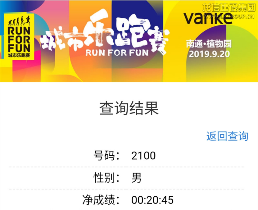 龍信團(tuán)隊(duì)積極參賽,選手們都取得較好成績(jī),2100號(hào)選手季宏標(biāo)、2122號(hào)選手李文華分別取得龍信團(tuán)隊(duì)樂(lè)跑賽第一、第二名,在本次萬(wàn)科南通城市樂(lè)跑賽中排名較前。